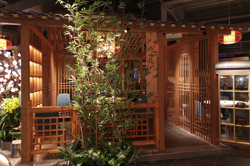 东莞新悦淘新中式粤菜馆铁管木纹漆