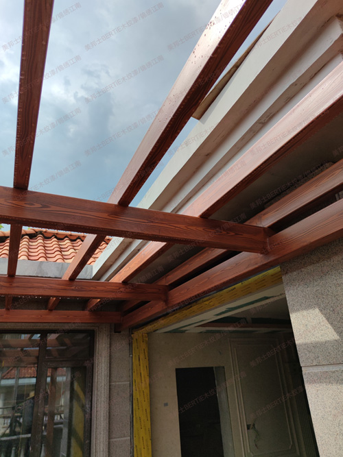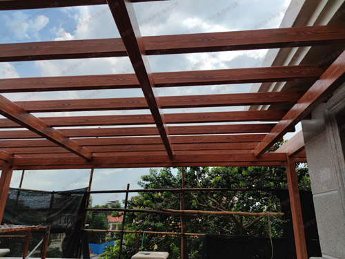 东莞锦锈江南别墅镀锌管葡萄架木纹漆