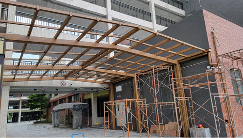 顺德拔萃实验学校镀锌管廊架木纹漆