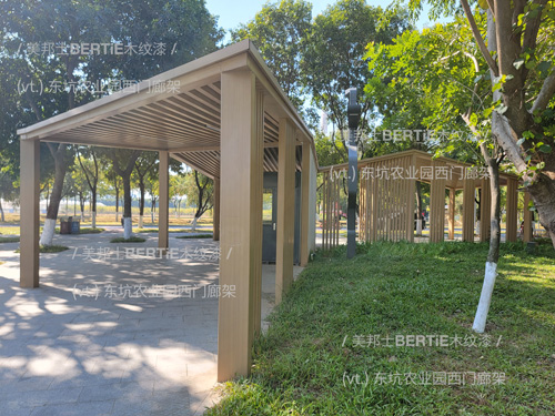 东坑农业园西门廊架镀锌管木纹漆