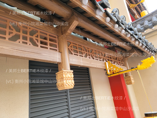 衡州小院湘菜馆沙溪店镀锌管木纹漆